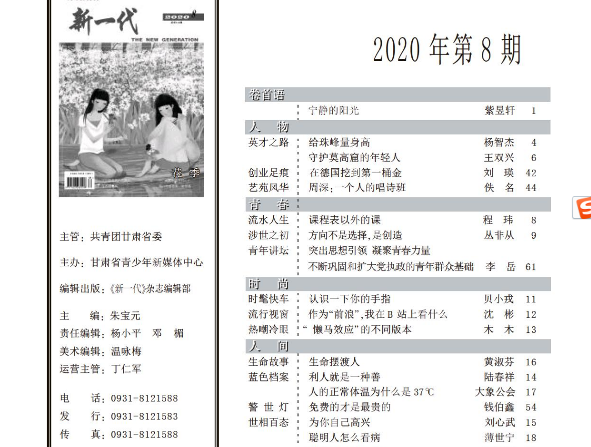 请收录《新生代》,龙源收录。