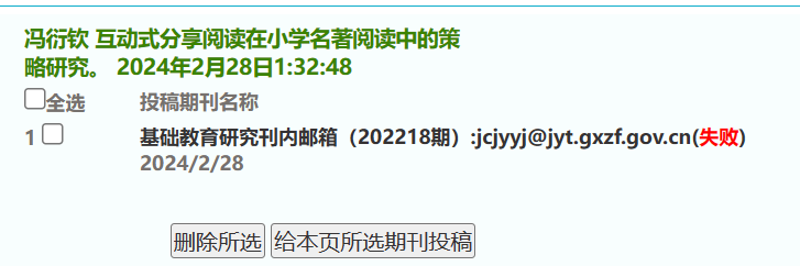 论文投递jcjyyj@gxedu.gov.cn这个邮箱,一直显示投稿失败,是怎么回事呢