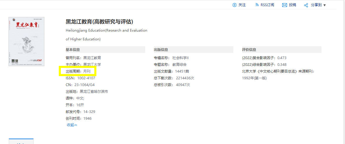 知网上显示《黑龙江教育(高教研究与评估)》的出版周期是月刊,不是旬刊
