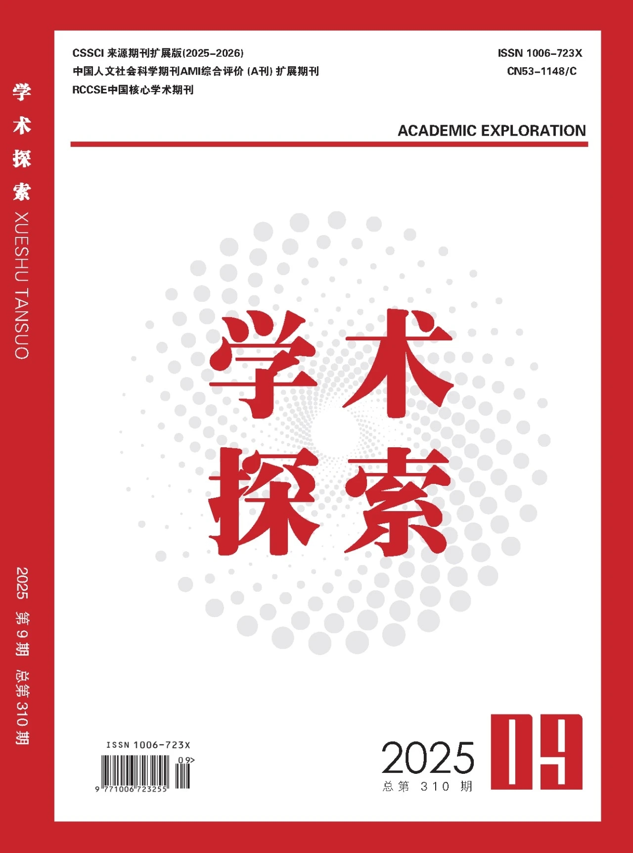 《学术探索》2025年第9期最新封面已经更新“CSSCI扩展版2025-2026”