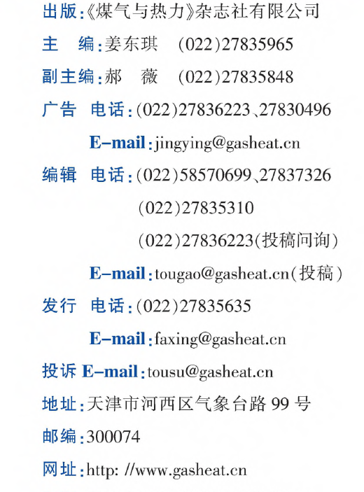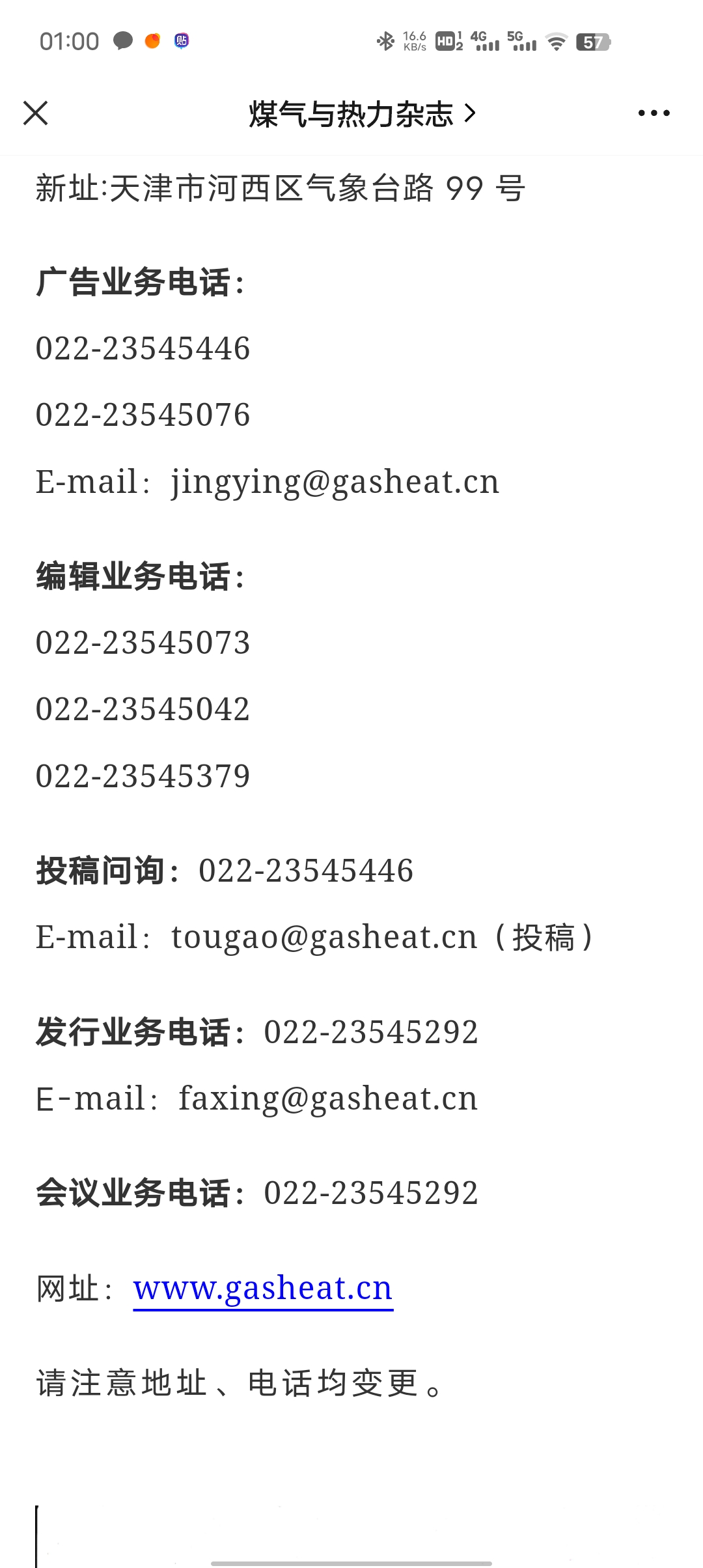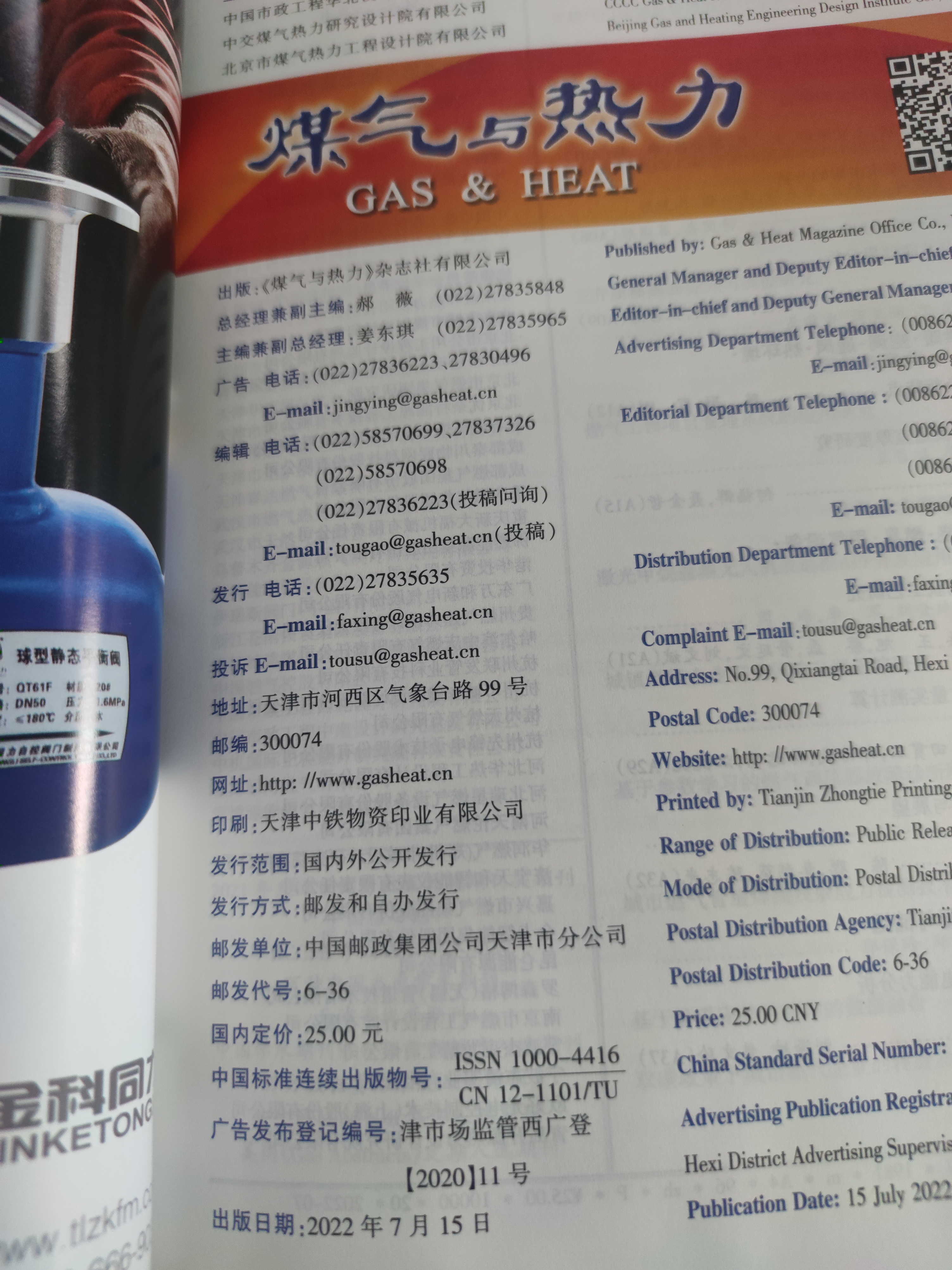 您好!我是《煤气与热力》杂志社李晓静,首先感谢您网站刊登我们杂志介绍,现在需要您更改下联系方式。谢谢!更改如下: