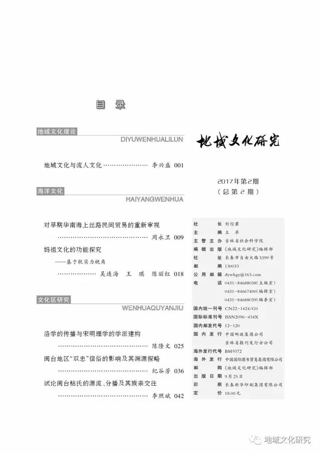 求见《地域文化研究》2017年第3期目录