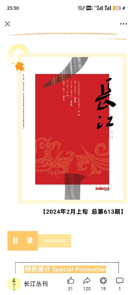官方公众号上的2024年2月上旬为文学作品版,这个封面图却是理论研究?