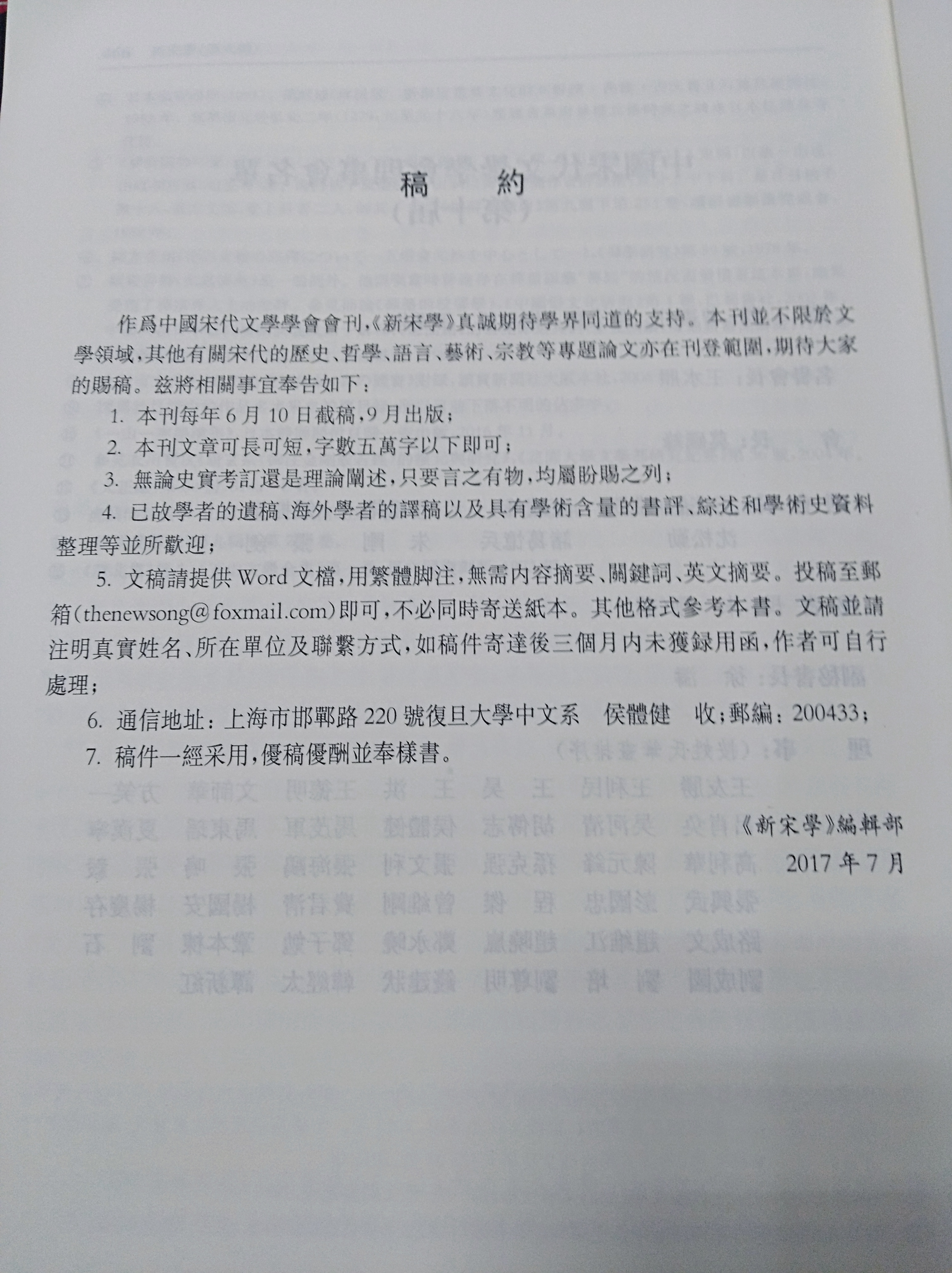 有劳增加集刊《新宋学》,目前已出版7辑,为宋代文学学会会刊。投稿须知见配图,投稿邮箱为thenewsong@Foxmail.com