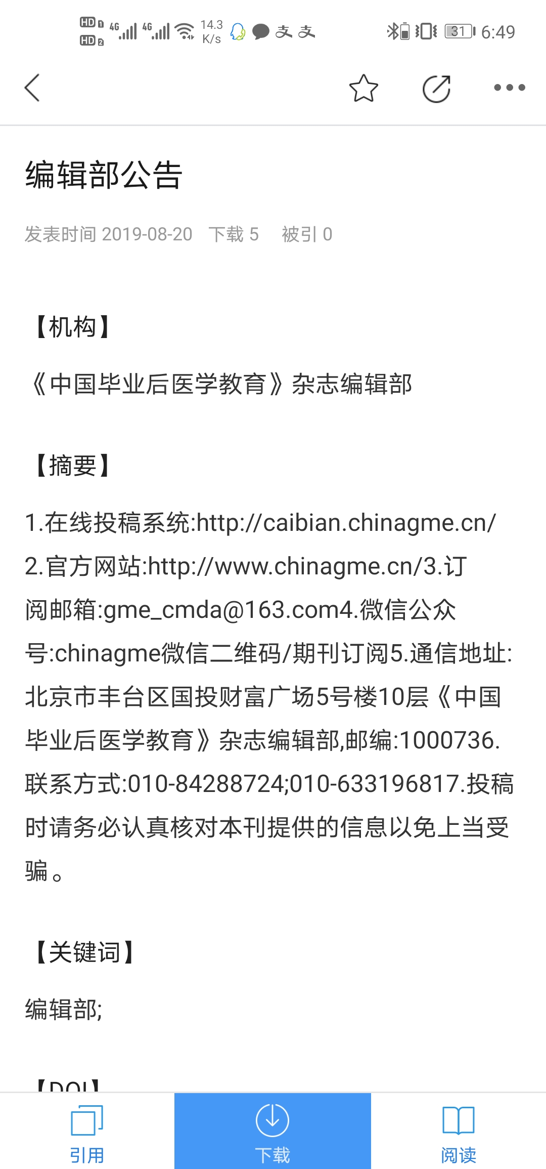 管理员回复:您好!已核对过2019年06期刊内信息,邮箱chinagme@163.com与电话010-84288724;63319681都没有变更,您看到的邮箱为订阅邮箱,电话是与后面的序列号7连到了一起!