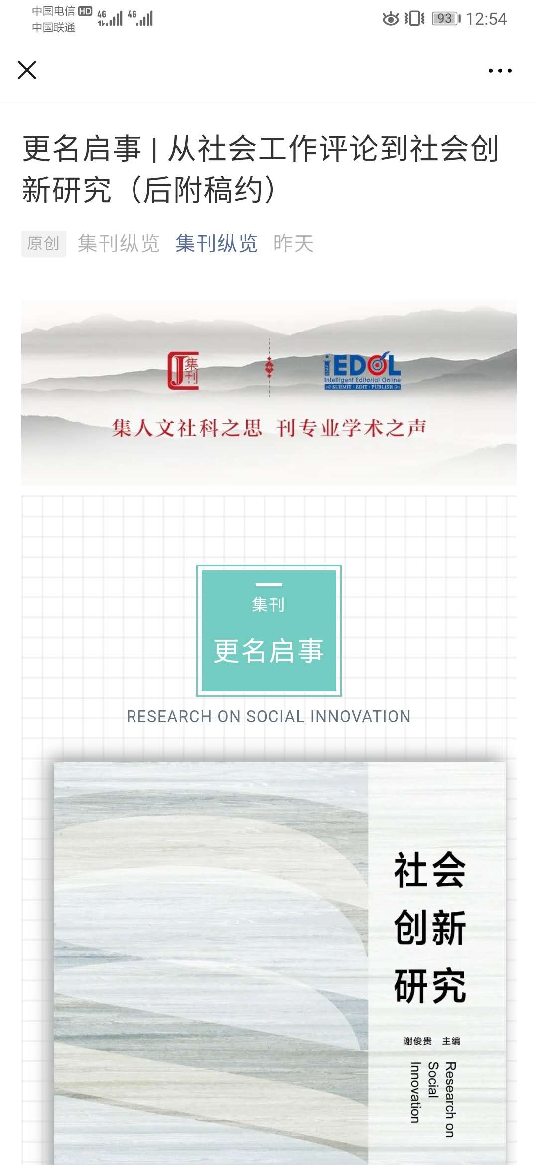 4月30日“集刊纵横”公众号发布文章,《广州社会工作评论》即日起改名为《社会创新研究》,由社会科学文献出版社出版,投稿方式不变。