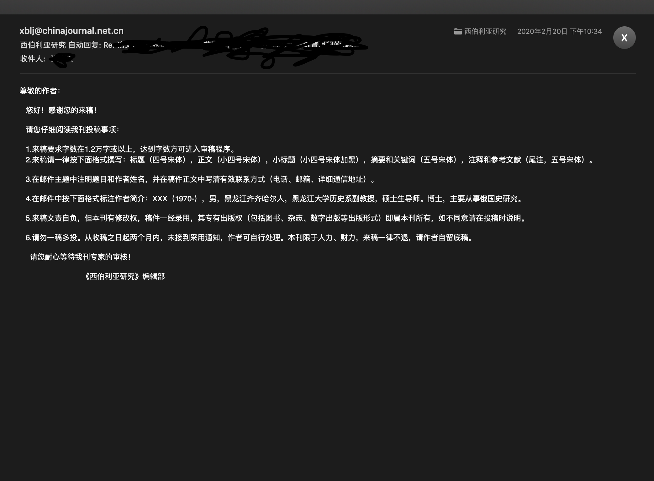管理员回复:谢谢您的反馈!现已更新期刊稿件字数与摘要要求,并添加邮箱自动回复信息!