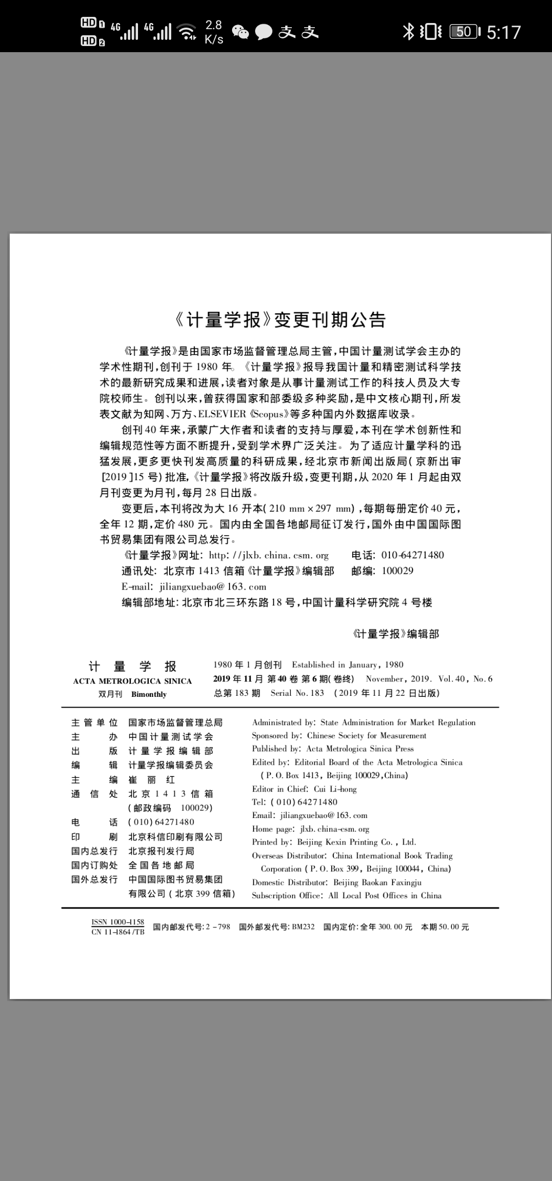 计量学报该刊已于2020年1月由双月刊改为月刊,请修改谢谢