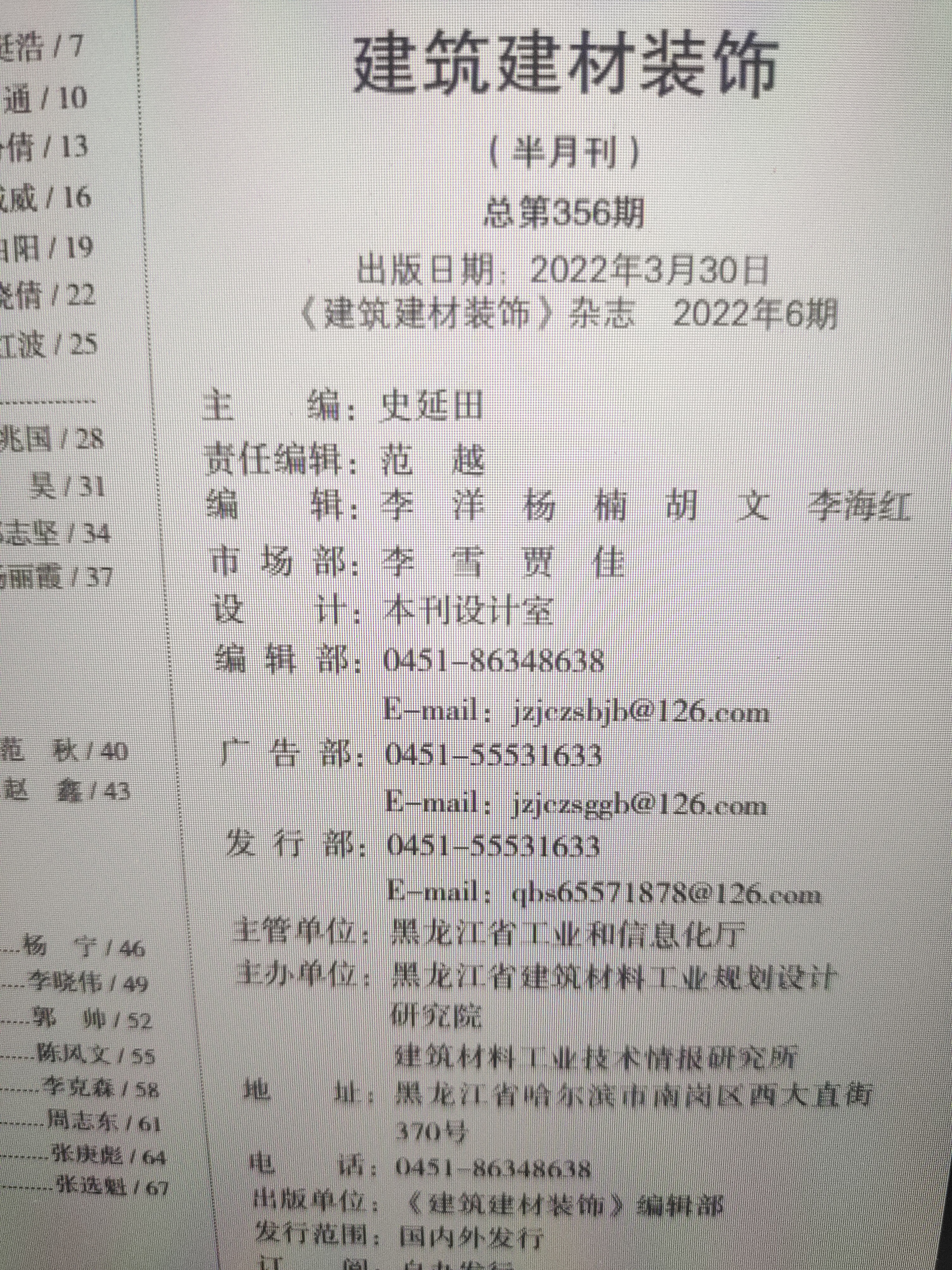 建筑·建材·装饰刊内电话变更