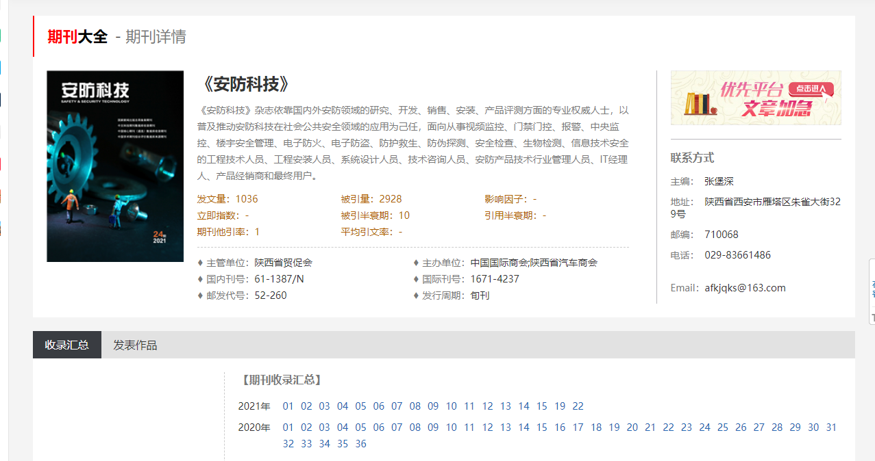 2023年安防科技是停刊状态还是恢复出刊了,如果出刊了现收录在那个网站