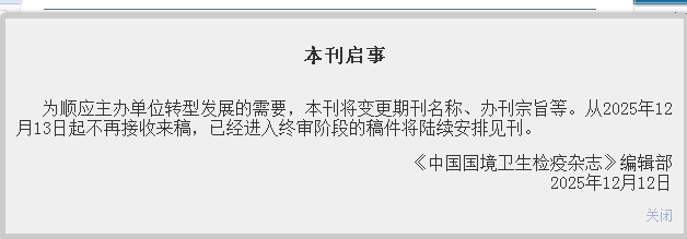 要更名为《中国质量检验检测》已经暂停收稿,在线投稿可取消,https://www.nppa.gov.cn/data/xkjg/202601/t20260113_946063.html