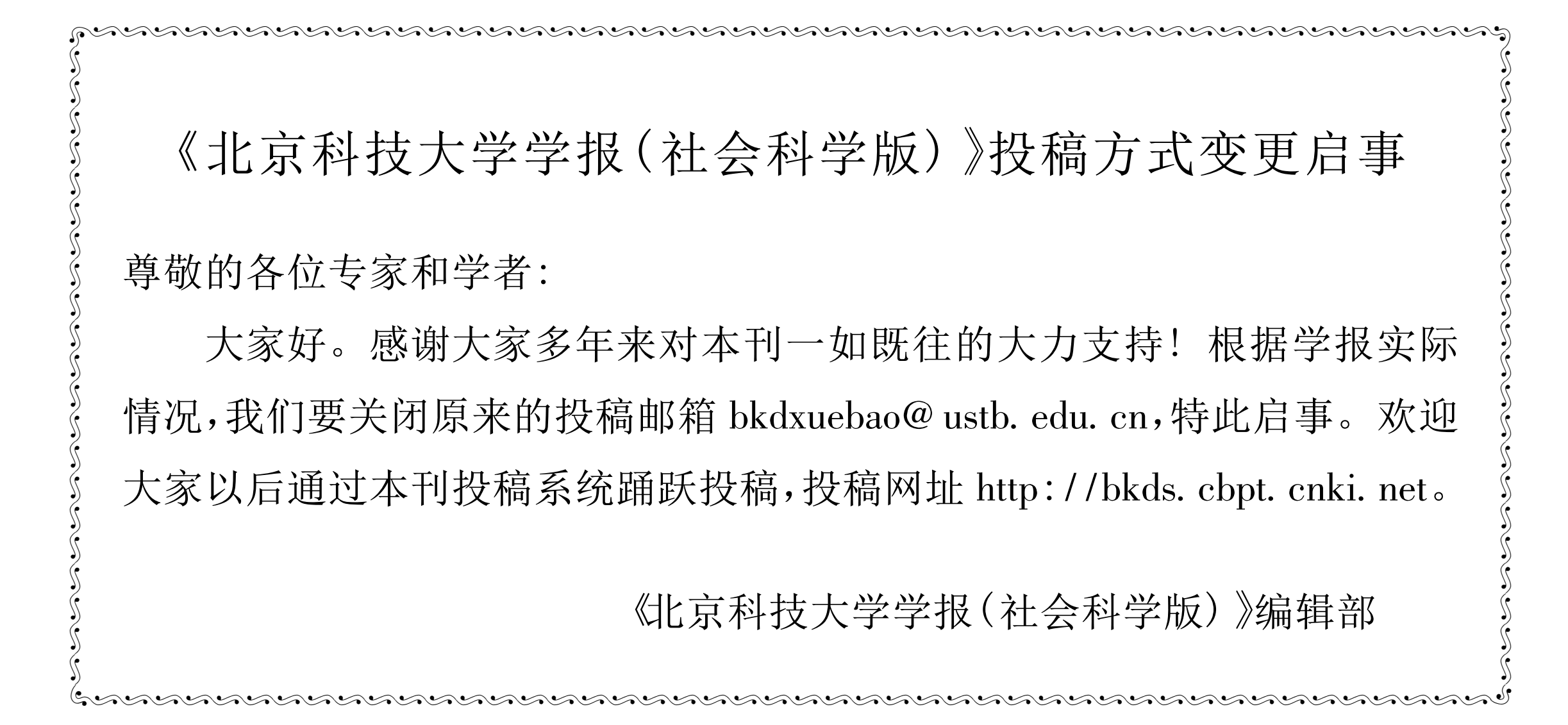 《北京科技大学学报(社科版)》2020年第1期上刊登了题为《〈北京科技大学学报(社会科学版)〉投稿方式变更启事》,文中说今后要关闭原来的投稿邮箱,今后只能采用该刊投稿系统来投稿了。请版主及时更新一下,谢谢了。