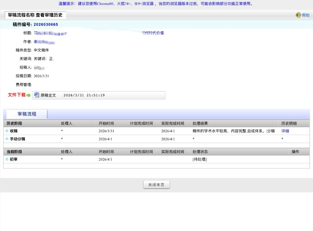 我的点评:投稿一个月,始终是“收稿”阶段,给编辑写信无回复,申请撤稿无回复。主打一个不回复。