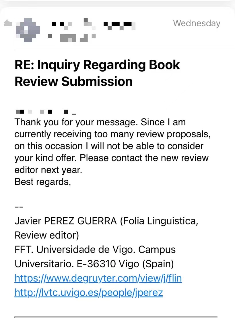 我的点评:四月份投了一篇书评,结果编辑第二天就说收到的书评太多了,处理不过来,让我明年再投。看来书评发的多的期刊也有风险,那就是稿件积压严重。