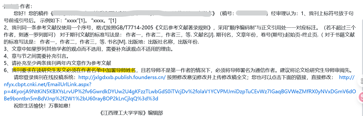 管理员回复:非常感谢您!很及时!看到后我们就给编辑部反馈了,他们也刚处理完,找回了密码,给很多作者都发了告知信,告诉大家不要受骗,也谢谢他们,如此尽心!