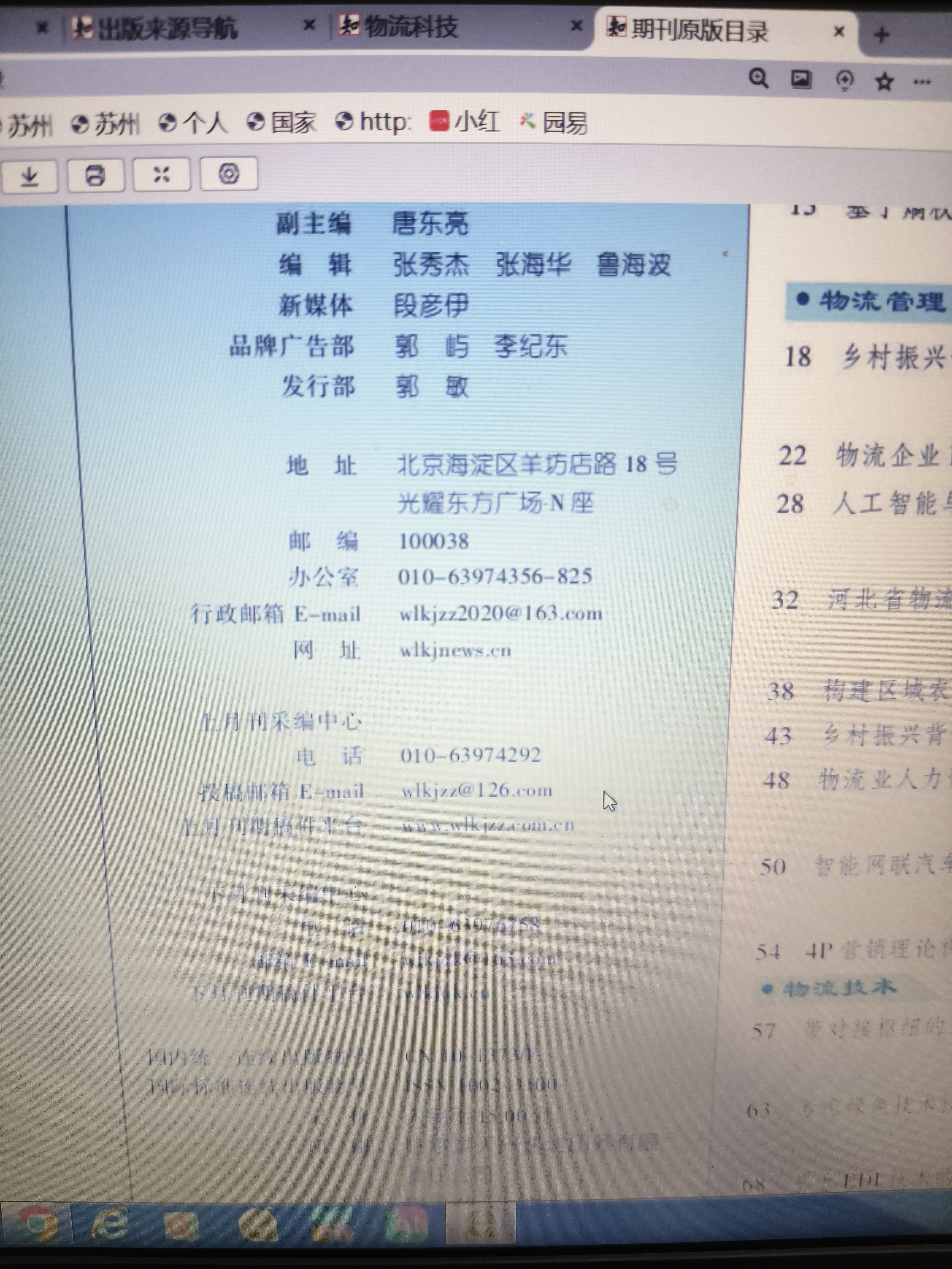 在《物流科技》第9期,编辑部北京的地址已经发生了变化(包括上半月、下半月采编中心信息),请更新。