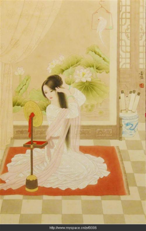 云雀舞,露珠残。恹恹欲睡梦阑珊。无言空对银妆镜,慵懒梳栊怨晓寒。