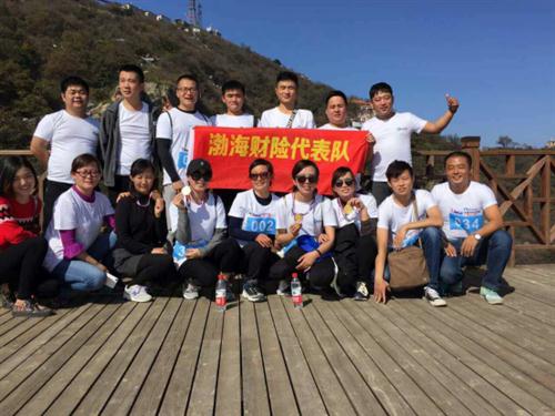 我们渤海保险的全体队员们顾不上欣赏周围美丽的湖光山色,一路前行,一路超越,半路上,部分队员都是气喘吁吁,到登到半山腰时,大部分队员都已筋疲力尽了,“歇会,再继续走,走到离山顶最后一段山梯时,几乎所有人都走不动了,这时,意志力起到了很大的作用,每个人心中都有一个信念------一定要登顶。