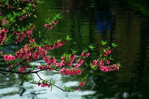 霄汉明珠涤碧桃,落花鱼跃水溅桥。山原好景舞丝绦。